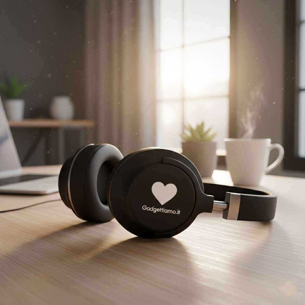 - Cuffie On-ear e Over-ear Personalizzate: Per un'esperienza audio più immersiva e un comfort superiore, con modelli che offrono ampie superfici per la personalizzazione del logo e un isolamento acustico ottimale.
