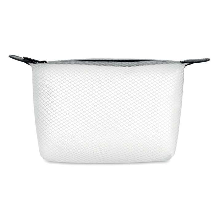 Portacosmetici in rete in EVA trasparente con zip nera.