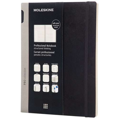 Il blocco note Moleskine Pro presenta pagine strutturate, pagine numerate e un elenco di contenuti per aiutarti a tenere traccia dei tuoi appunti. Dispone di una morbida copertina con angoli arrotondati, pagine color avorio da 70 g/m², carta priva di acidi con segnalibro a nastro in colore coordinato e chiusura con elastico. Include un frontespizio con nota in cui scrivere il recapito in caso di smarrimento e le ultime 8 pagine staccabili.
