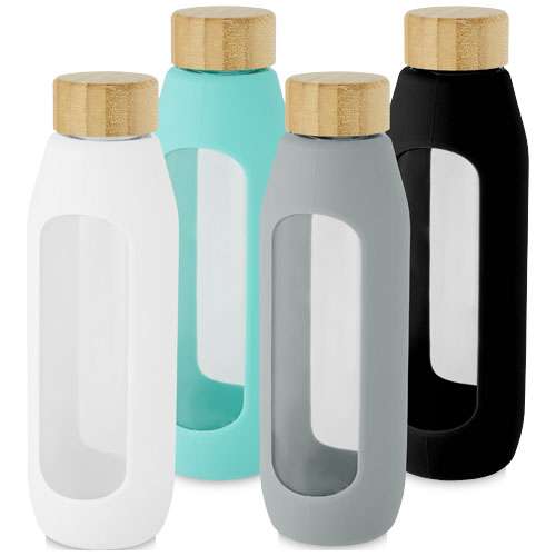 Borraccia in vetro borosilicato da 600 ml con impugnatura in silicone Tidan