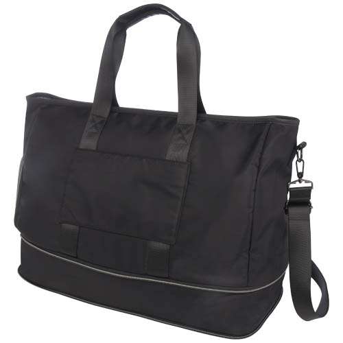 Il borsone espandibile Rhine si trasforma facilmente e con stile in svariate occasioni, grazie al design elegante e alla versatilità. Realizzato in nylon riciclato di alta qualità, presenta una morbida fodera in PET riciclato ed elementi in pelle PU di prima qualità. Il borsone è dotato di uno spazioso scomparto principale con un'ampia tasca in TPU a prova di perdite, 2 tasche, uno scomparto dedicato per le scarpe, una tasca nascosta sicura sul retro (che serve anche per agganciarlo a un trolley) e spallacci removibili e regolabili per il massimo comfort. Ciò che distingue questo borsone è lo strato espandibile, che può essere esteso fino a una capacità di 42 litri. Capacità: 35-42 litri. Resistenza fino a 20 kg di peso. Senza PVC.