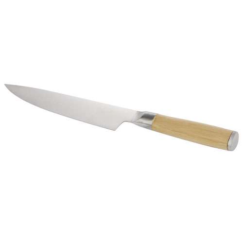 Coltello da chef con manico in bambù. Il bambù è stato approvvigionato e prodotto secondo standard sostenibili.