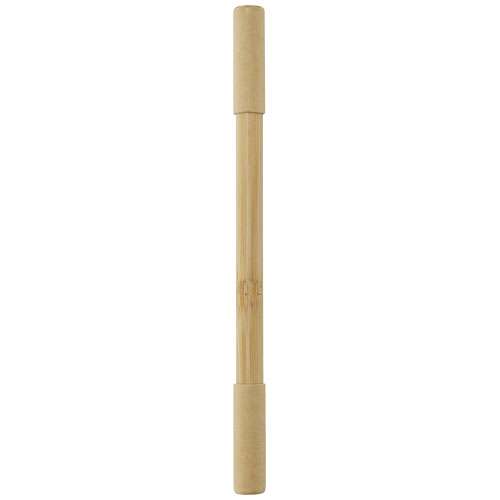 Il set di penne Samambu presenta una penna unica con due punte: 1 penna a sfera e 1 penna senza inchiostro. La parte senza inchiostro non richiede cartucce d'inchiostro o ricariche. La punta di grafite nera della penna è progettata per lasciare tracce visibili sulla superficie di scrittura. La scelta di una penna in bambù senza inchiostro favorisce pratiche più sostenibili e incoraggia l'utilizzo di materiali rinnovabili. La penna a sfera presenta inchiostro di colore blu, un pennino di 1,00 mm e una capacità di scrittura di 600 metri. Capacità di scrittura penna senza inchiostro: 1500 metri.Colore inchiostro: Blue