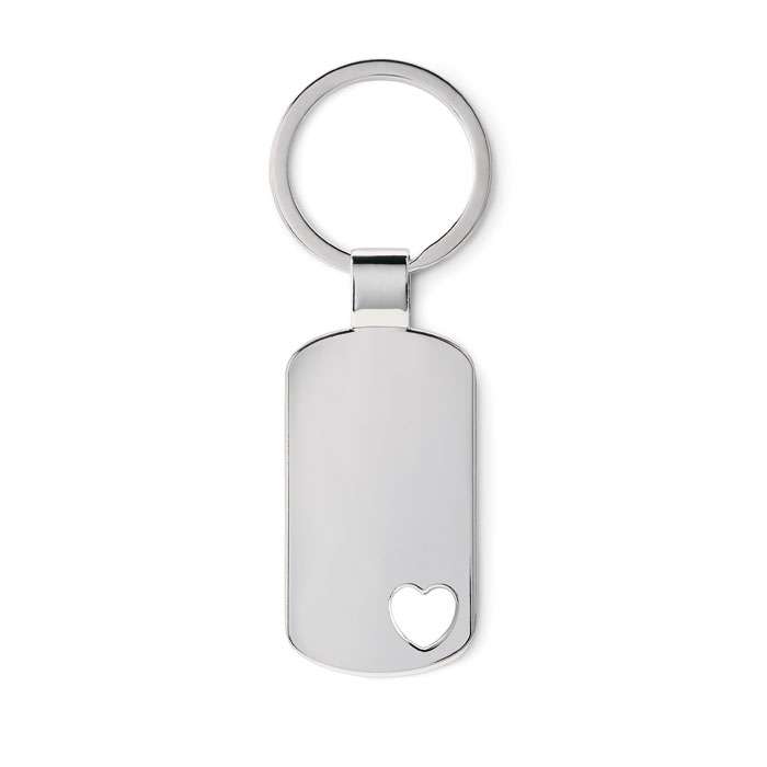 Portachiavi in metallo con dettaglio a forma di cuore. Confezionato in scatolina.