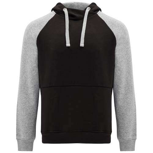 Felpa con cappuccio unisex bicolore. Cappuccio con collo incrociato e occhielli in metallo. Cappuccio interno a contrasto, cordoncino e maniche raglan. Tasca a canguro. Polsini e orlo in maglia a coste 1x1 in elastan. Etichetta rimovibile.