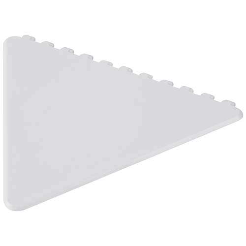 Triangular-shaped windshield scraper with a large decoration area. Each of the 3 sides can be used to remove ice from the windshield. Made in the UK from recycled plastic. The ice scraper has a speckled finish due to the nature of the recycled material.