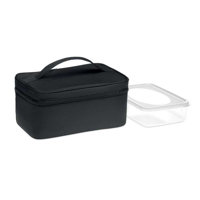 Borsa termica termica in 600D RPET. Include un portapranzo riutilizzabile in PP con capacità di 1900 ml. Fodera in foglio di alluminio da 2 mm.