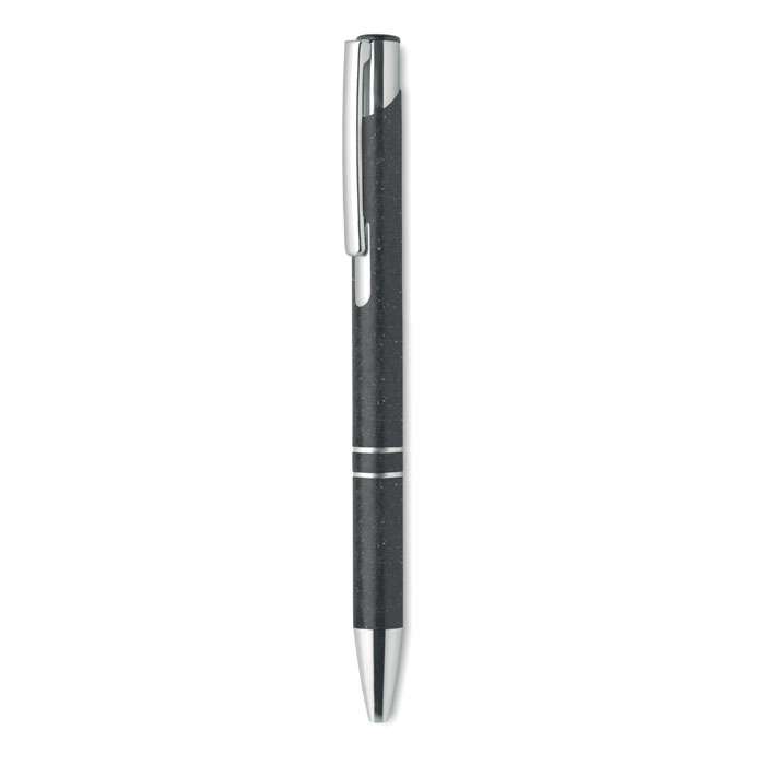 Penna a sfera push in paglia di grano 50% e ABS 50% con dettagli in argento. Refill blu.