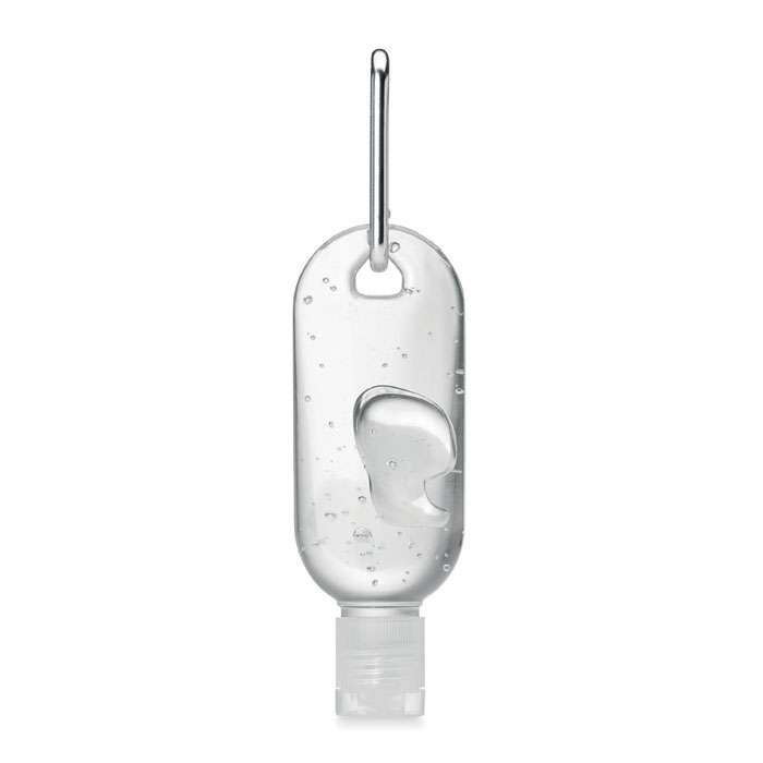 Gel mani in flacone in RPET ricaricabile con moschettone. Capacità 30ml.