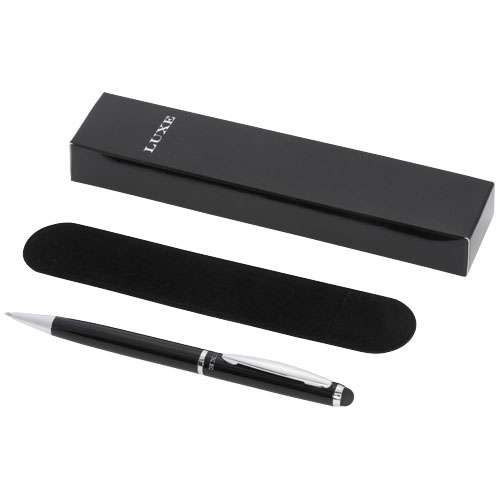 Penna stilo a sfera con meccanismo a rotazione dal design esclusivo e con sacchetto di velluto. Confezionata in una scatola regalo "LUXE" (dimensione: 17 x 3,5 x 2 cm).Colore inchiostro: Black