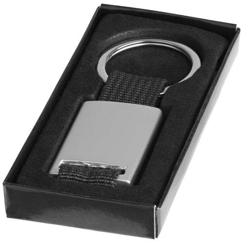 Portachiavi rettangolare. Tieni al sicuro le tue chiavi con questo moderno portachiavi. Alluminio con fettuccia colorata in poliestere. Fornito in confezione regalo nera.