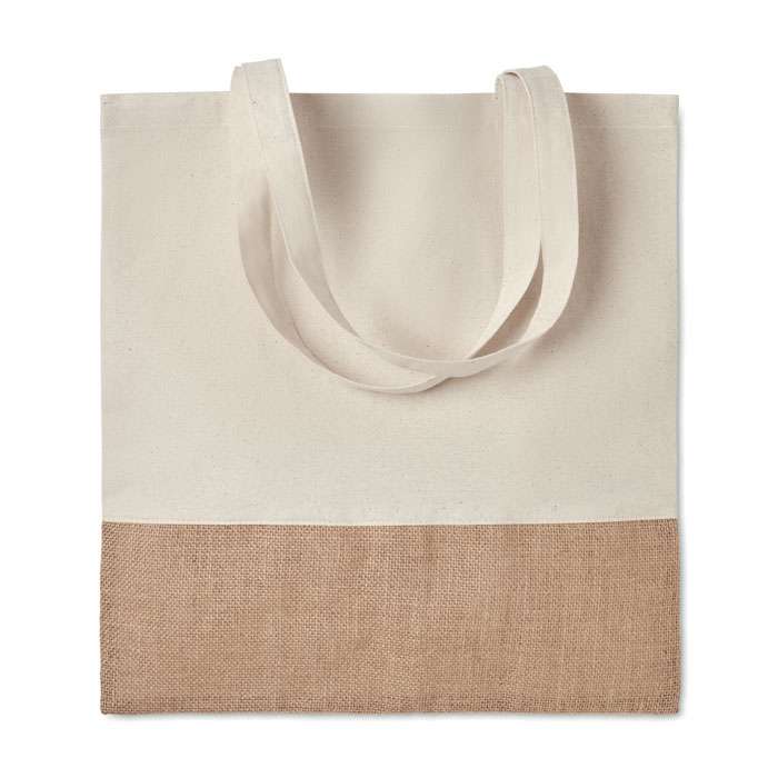 Shopper in cotone twill con dettagli in juta. Manici lunghi. 160 gr/m².