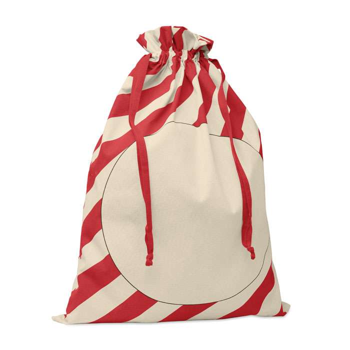 Sacchetto grande in cotone con cordoncino per Babbo Natale. Dimensioni circa 50x70 cm. 180 gr/m².