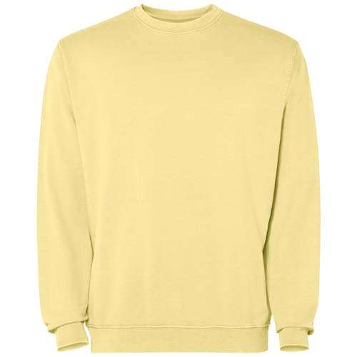 Maglione unisex con finitura con lavaggio acido. Colletto, polsini e orlo a costine 2x1 in tono. Cuciture rinforzate su polsini, orlo, vita e giromanica. Ccopertura tono su tono sulle cuciture sul collo.