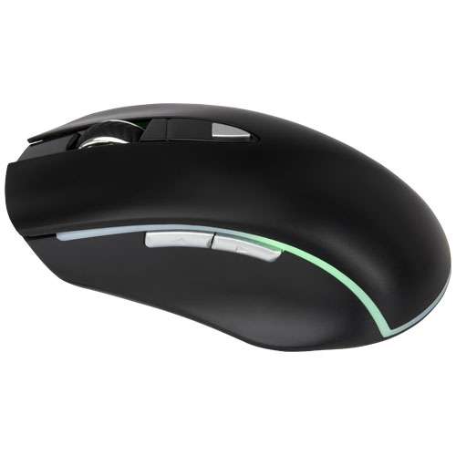 Mouse wireless ergonomico che si adatta perfettamente al palmo della mano. Ottimo supporto per il polso per lunghe sessioni di lavoro/gioco. Il mouse dispone di 3 impostazioni DPI (800/1200/1600) per qualunque esigenza di sensibilità. La batteria agli ioni di litio ricaricabile integrata da 400 mAh offre fino a 20 ore di utilizzo con la luce LED accesa. Una volta personalizzato con incisione laser, il logo si illuminerà e brillerà. Il colore della luce cambia automaticamente in maniera casuale.