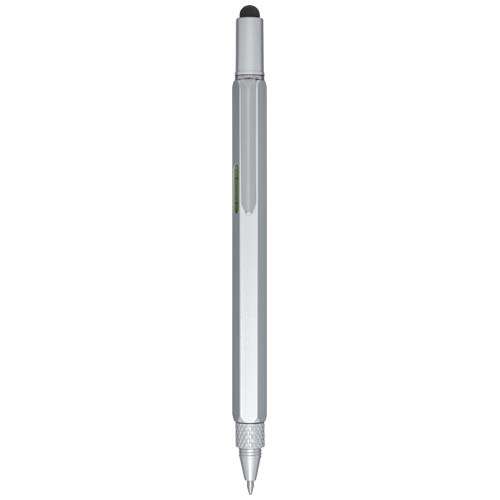 La penna a sfera multifunzione in alluminio Dora è realizzata in parte con materiali riciclati ed è dotata di righello a doppio lato, livella a bolla, cacciavite, gradiente e uno pennino nero in gomma. Il fusto è realizzato in alluminio riciclato con rivestimento verniciato a spruzzo color argento. La clip è realizzata in ferro. Il cacciavite è realizzato in acciaio. La parte superiore e la punta sono realizzate in plastica ABS riciclata. Colore dell'inchiostro: Nero. Capacità di scrittura: 400 metri. Dimensione del pennino: 1,0 mm.Colore inchiostro: Black