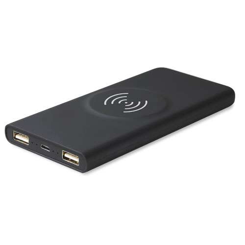Power bank wireless da 5.000 mAh, realizzato in gomma, con logo luminoso, cavo in plastica PET riciclata 3 in 1 (tipo C, Android, iPhone) e trattamento antibatterico. Il dispositivo si illumina per 30 secondi quando viene toccato o ricaricato. Capacità: 5000 mAh. Ingresso: 5 V/2,4 A (micro). Uscita: 5 V/2,4 A (USB). Uscita wireless: 5 V/2 A max. Frequenza: 110 kHz - 205 kHz. Peso netto: 148 grammi. Dimensione: 140 x 67 x 11,8 mm. Fornito in una confezione regalo realizzata in carta riciclata.