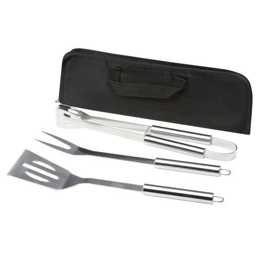 Set da barbecue composto da 3 pezzi: spatola (34,8 x 7,5 cm), forchettone (35,4 x 3,35 cm) e pinza (35 x 6,8 x 4 cm). Tutti gli accessori sono consegnati in una custodia leggera, facile da trasportare e riporre. L'accessorio perfetto per il barbecue in giardino oppure da portare con sé per una grigliata all'aperto con amici e familiari.