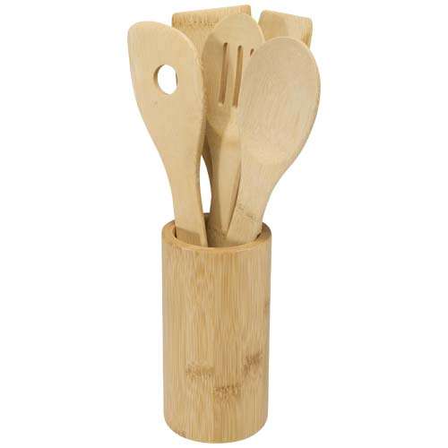 Un set di spatole da cucina in bambù con supporto coordinato, progettato per essere resistente, leggero e sicuro per le pentole antiaderenti. Questo set naturale è ideale per la cucina di tutti i giorni e aiuta a mantenere la cucina organizzata. Comprende un cucchiaio (29,8 x 5,8 cm), un cucchiaio forato (29,8 x 5,8 cm), una spatola piatta (30,3 x 6,1 cm), una spatola piatta forata (30 x 6 cm) e una paletta con scanalature (30 x 6 cm). Tutti gli strumenti sono realizzati con uno spessore di 0,8 cm per un uso affidabile.