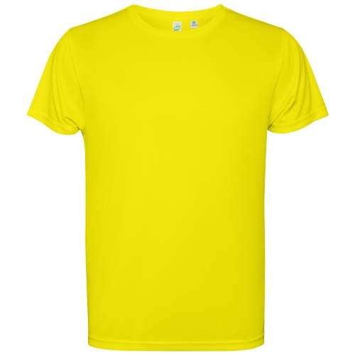T-shirt tecnica a maniche corte da uomo. Collo con cuciture abbinate. Orlo posteriore leggermente più lungo di quello anteriore. Cuciture laterali spostate in avanti.