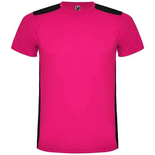 Tessuto tecnico traspirante che si asciuga rapidamente. Girocollo. Combinazione di due tessuti in poliestere sul retro e sulle spalle. Tessuto a occhio di pernice sul davanti e tessuto mesh 3D traspirante sul retro. Tessuto realizzato per assorbire l'umidità. Cucitura decorativa a zigzag con impuntura sui lati e sulle spalle. Parte posteriore leggermente più lunga. Etichetta rimovibile.